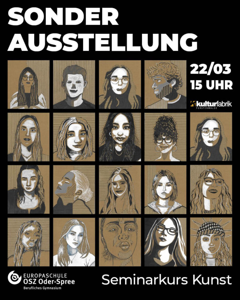 Am Sonntag, den 22.03.2026, in der Zeit von 15 – 18 Uhr präsentiert der Kunst-Seminarkurs des Abiturjahrgangs 2025/26 des OSZ Oder-Spree seine Arbeiten. Der Kurs verbindet künstlerische Praxis mit Berufsorientierung und ermöglicht Einblicke in kreative Berufsfelder sowie mögliche Bildungswege nach dem Abitur. Ein wichtiger Bestandteil des Kurses ist die Entwicklung einer eigenen künstlerischen Mappe, in […]