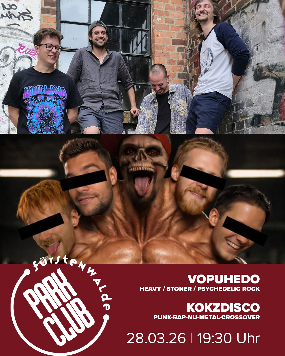 Am 28. März 2026 treffen im Parkclub zwei Bands aufeinander, die jeweils auf ihre eigene Weise Druck, Energie und Spielfreude auf die Bühne bringen.